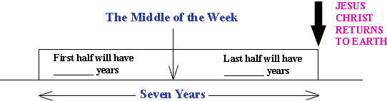 Also in Daniel 9:27 the prophet talks about "the midst of the week." This means "the MIDDLE of the week". Remember, this week is made up of 7 years. If you put a line right in the middle of this 7 year week then you have divided this week into two parts with each part having how many years? __________________
