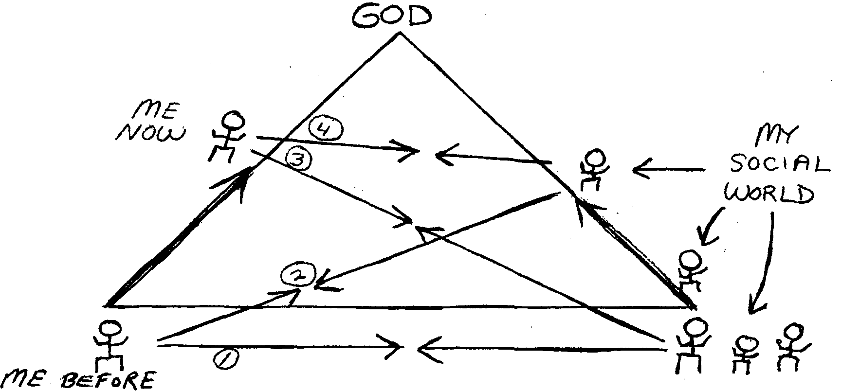 If I choose to go down the right road (see Figures 6-3 and 8-1), what is going to happen to my relationships? What about my friends (school friends, boyfriends, girlfriends, etc.) who are not on this road? By going Gods way, am I going to help them or hurt them? As they see me going down the road of rightness, how will they react? Will they be mad? sad? glad? Will they understand? What about my parents and my other family members who may or may not be on Gods road (see all the possible combinations illustrated in Chapter 2, Figures 2-1 and 2-2)? Am I helping them by going down Gods road? What will happen to my relationships that I have with my family members? Should I continue on Gods road or should I quickly get off?